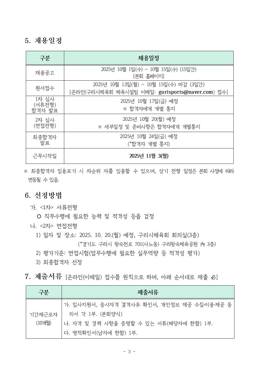 구리시체육회 수탁체육시설 기간제근로자 채용공고