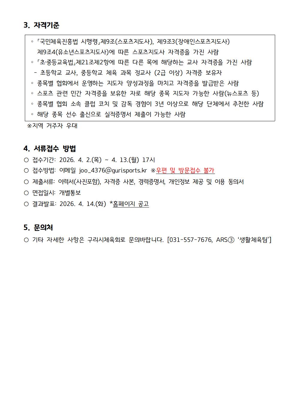 2026년 구리시체육회 수탁체육시설 기간제근로자 채용공고