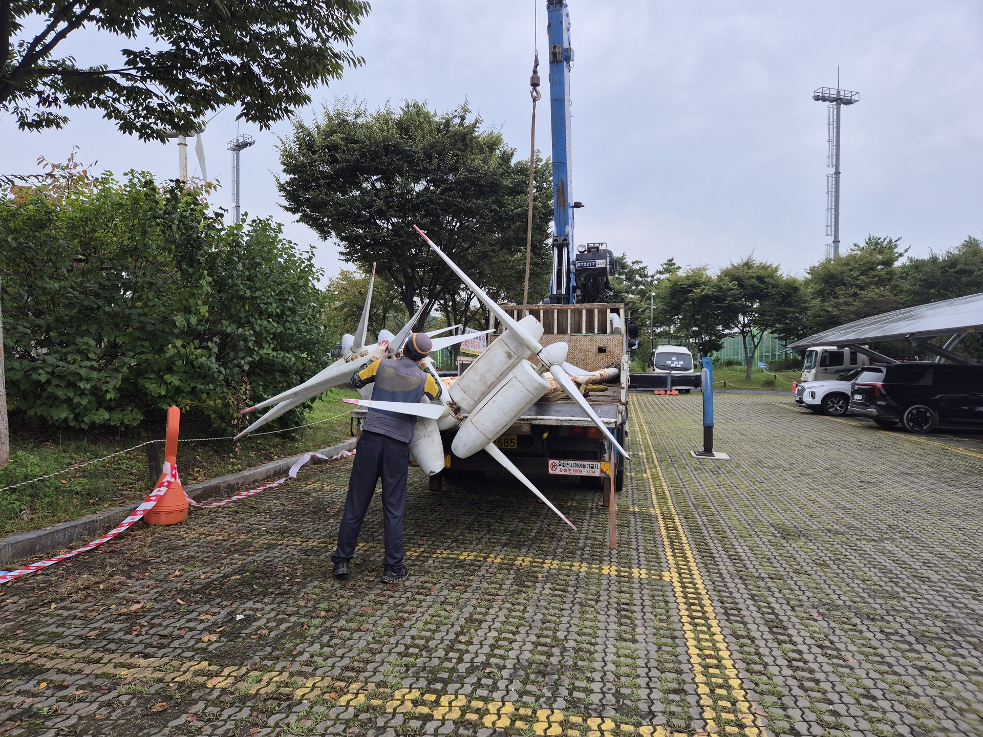 왕숙체육공원 조형물 (바람개비) 10개, 안전 미관을 위한 철거 작업(2025.9.30)