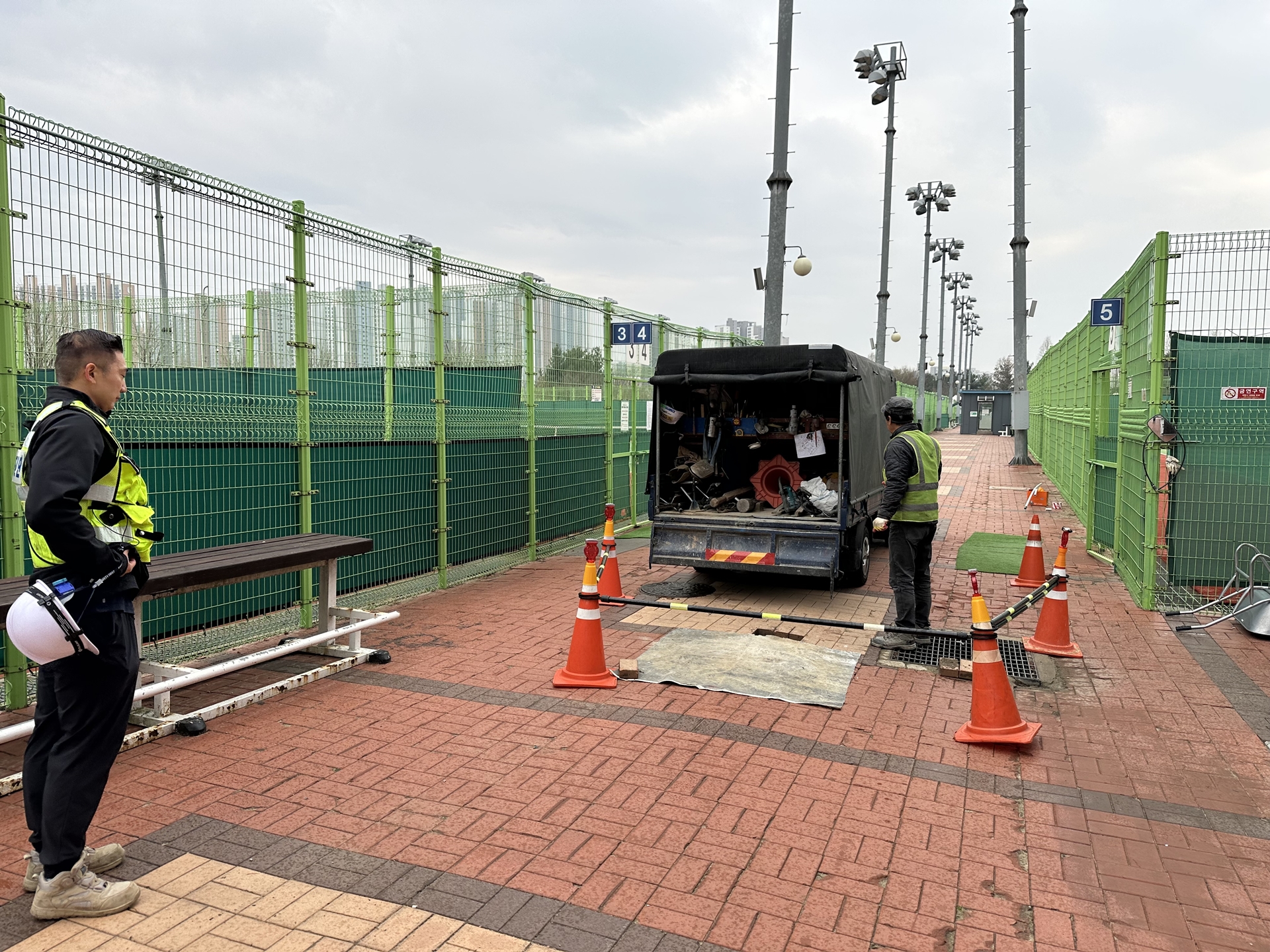 왕숙체육공원 테니스장 16,17번 코트, 관리동 건물 안전 진단 (지반 상태) 시추 작업(2026.4.6)