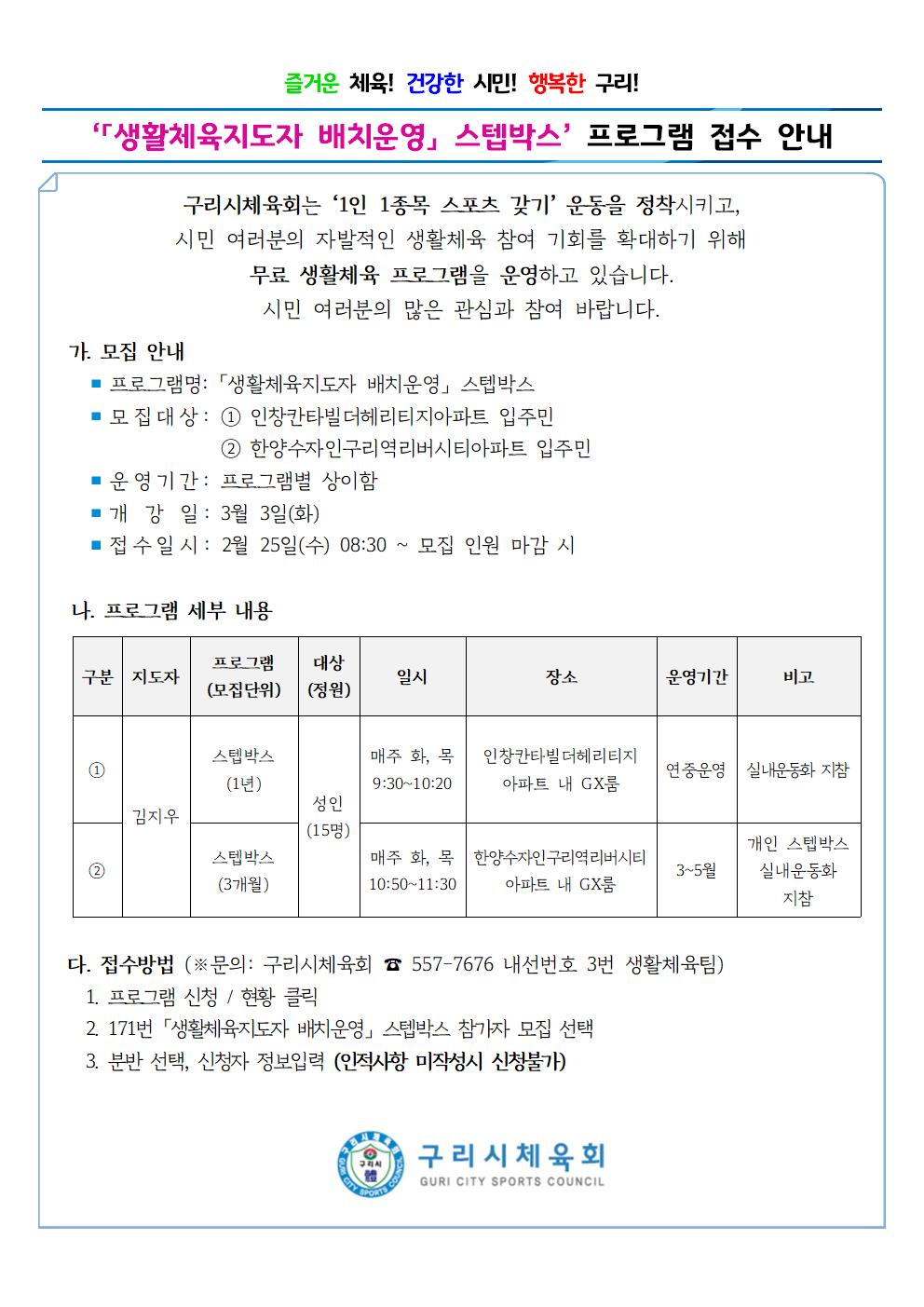 「생활체육지도자 배치운영」 스텝박스 참가자 모집