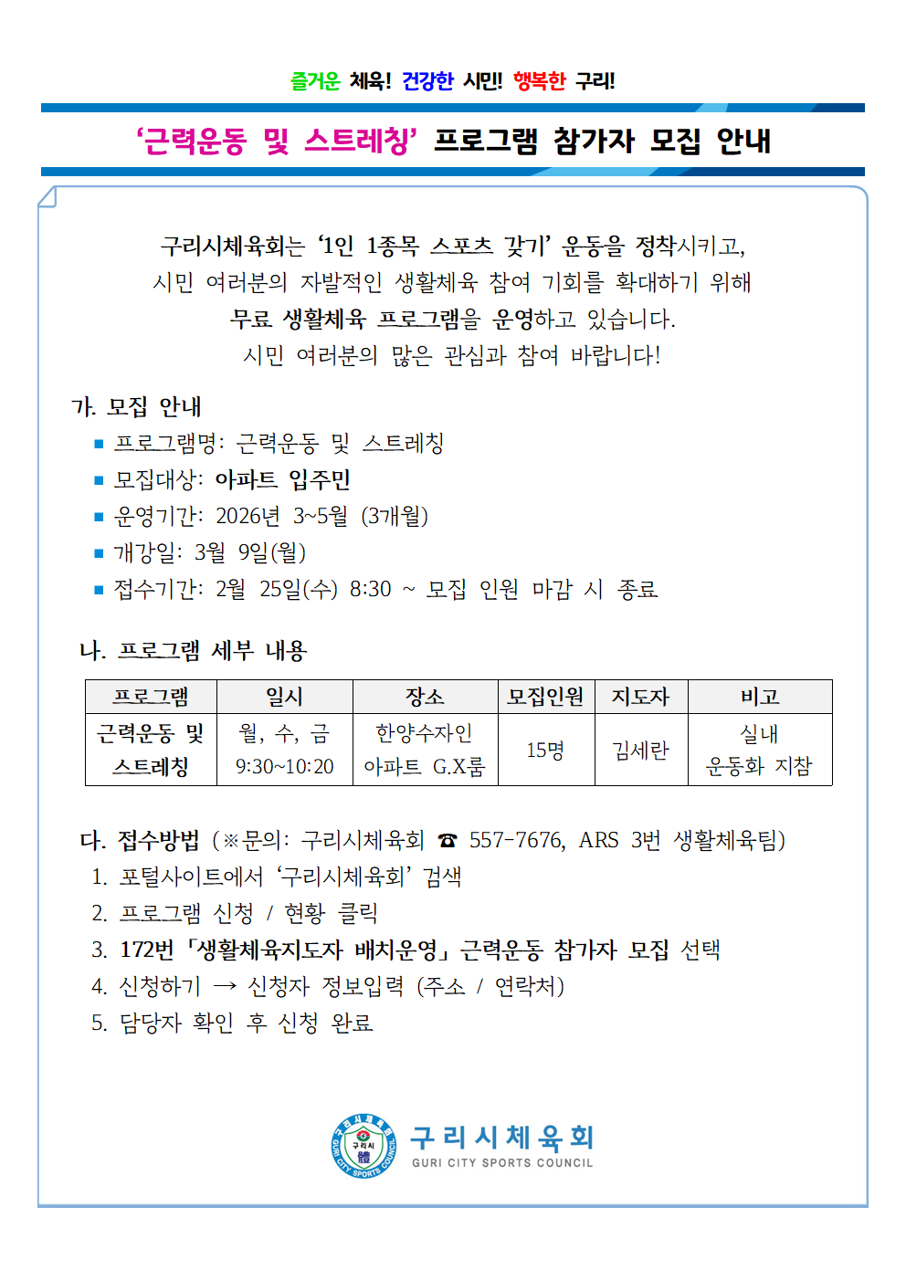 즐거운 체육! 건강한 시민! 행복한 구리!